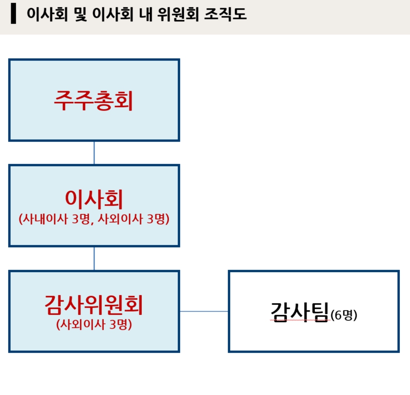 또한, 이사회 내 위원회인 업무집행에 관한 내부통제를 수행하는 감사위원회 역시 구성원 3명을 전원 사외이사로 구성하여 운영하고 있습니다.